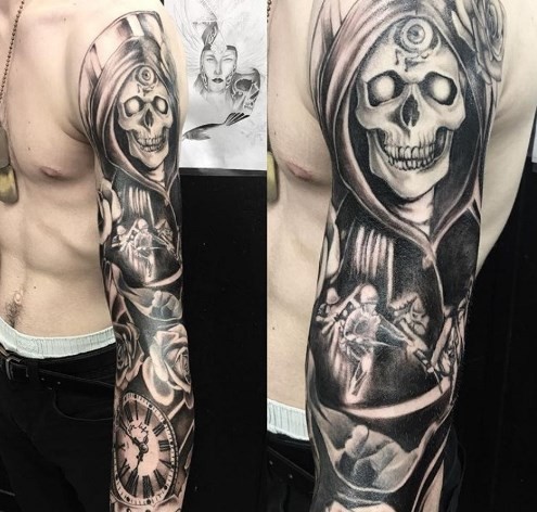 Tatouage de manchette réalisé dans notre salon de coiffure - tatouage et piercing Magic Circus. Beaucoup d'hommes aiment les tattoos de manches, parce qu'ils ont un rendu assez impressionnant, particulièrement si vous utilisez un bon dessin et de bonnes combinaisons de couleur...