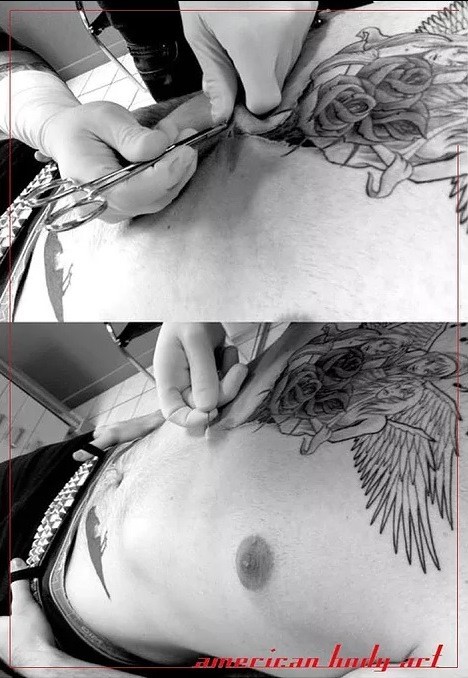 Piercing effectué dans notre salon de coiffure - tatouage et piercing Magic Circus, situé au 44 rue des Lombards. Trouvez vos idées de tatouage avec divers books de dessins mis à disposition...