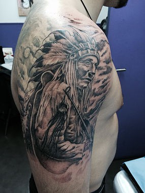 Tatouage sur l'épaule réalisé dans l'un de nos salons de tatouage. Venez découvrir nos salons de tatouage American body art partout dans Paris. Trouvez vos idées de tatouage avec divers books de dessins m...