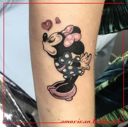 Tatouage Minnie réalisé dans le salon American Body Art. Découvrez le tatouage d'amoureux fans de Disney! Tellement mignon... Le tatouage de Mickey et Minnie Mouse est l'un des plus populaires et des plus symboliques de nos jours...