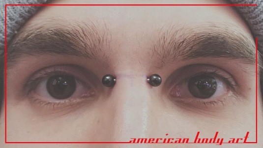 Bridge piercing effectué dans notre salon. Le piercing Bridge est un piercing qui traverse horizontalement la peau qui se situe entre les deux arcades sourcilière, juste au dessus du nez. Non, ce piercing ne traverse pas l’os comme beaucoup le pense…